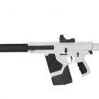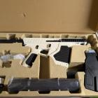 La carcasse de l'arme est majoritairement fabriquée en polymère de couleur blanche, très bien moulée. Les différentes parties sont de la même couleur et la séparation n'est pas trop marquée dans le moulage. Le sommet de la carcasse comporte un long rail de type Picatinny sur lequel il est possible de fixer une optique, notamment le petit viseur à point rouge fourni dans le pack. De nombreux arrêtoirs noirs égayent ce boitier de culasse. Le sélecteur de tir, l’arrêtoir de chargeur et levier d’armement donnent ce qu’il faut de réalisme à la copie, ils sont tous actifs et permettent de faire fonctionner cet airgun.