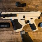 Comme mentionné en introduction, il est possible de déposer la crosse et son support pour réduire l’encombrement du ST-1 et le transformer en pistolet mitrailleur. Il suffit de chasser une goupille vers le système d’attache arrière de la bretelle pour ôter le support de crosse. Le sabot amortisseur est fabriqué en polymère dur et strié horizontalement afin d’adhérer un peu à la tenue de tir. La poignée pistolet est assez droite mais avec un bon galbe sur le dos, ce qui offre une bonne prise en main. Des zones granitées en surface de part et d’autre de cette poignée assure un grip confortable. Des empreintes de doigt sont moulées à l’avant. Le devant du ST-1 est très court, la partie avant est en fait un faux réducteur de son qui peut aussi servir pour tenir l’arme avec la main faible.