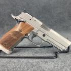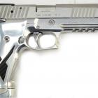 Elle est réalisée en acier massif inoxydable. Le fonctionnement de l'arme est d'une douceur et d'une fluidité assez impressionnante. La glissière est confectionnée dans le même matériau pour une résistance à l'usure et aux tirs sans faille. Ce pistolet est long, plus de 24 cm et haut de 15 cm environ, c'est une sacrée bête qui impressionne lorsqu'il est couché dans sa boite de transport. Du coup, avec son canon de 5'' l'arme est lourde : 1,288 kg sur la balance. Mais elle est très stable au tir, surtout avec le recul assez modéré du 9x19 mm. Un rail picatinny à 4 slots permet de monter des accessoires tactiques si besoin, notamment un pointeur laser sous le canon.