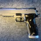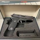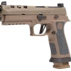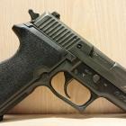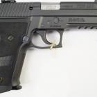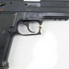 La poignée du P 226 X-Five Supermatch est large et massive. Le puit de chargeur est évasé afin de gagner de la vitesse lors des changements rapides de chargeurs en compétition. Les plaquettes sont confectionnées en G10, un matériau aussi utilisé pour les manches de couteaux, très solide ! Elle englobe tout le tour de la crosse. La surface est très structurée, offrant un excellent grip et une prise en main optimale. Les finitions sont au top