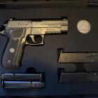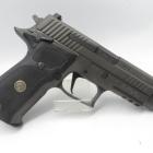 L'arme tient bien en main. Elle est assez compacte mais offre tout de même une large place pour les deux mains. Les quadrillages à l'avant de la poignée et du pontet donnent une bonne adhérence en prise haute. Nous avons tiré quelques balles sur appui afin de juger la précision réelle de l'arme. Puis à bras francs. Le recul est réellement contenu et malgré le poids assez léger de ce pistolet il ne relève vraiment que très peu. Sig Sauer propose une belle version de son P226, certes beaucoup plus chère mais qui satisfera les tireurs ayant un bon budget et les amoureux de belles armes.