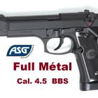 Le canon est lisse, pour le tir de billes d’acier BB’s c’est obligatoire et mesure ……12 cm de longueur. La finition noire du canon lui donne une ligne impeccable grâce à la glissière très ajourée du modèle 92 ou M9 aux USA.