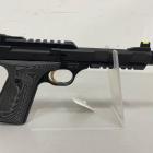 Elle est ambidextre comme sur tous les Buck Mark et offre un confort de tir et une prise en main excellents. Les plaquettes Ultra FX offrent un toucher assez doux. La texture de surface et les empreintes de doigts légèrement découpées procurent une bonne tenue en main.