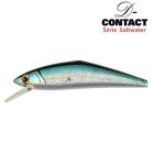 Le D Contact a été étudié pour pêcher dans les courants et veines d'eau assez puissants. Sa tête est effilée afin de bien pénétrer dans l'eau et guider le leurre. Ses flancs plats et haut offre une bonne surface de portance au D Contact pour le stabiliser. L'action de nage est marquée. Au moindre coup de scion le leurre se désaxe, se tord et fait miroiter ses flancs pour créer de bons signaux visuels. Cette nage saccadée imite à la perfection un petit poisson blessé ou chahuté par le courant, ce qui déclenche l'attaque de la truite qui pense profiter d'une proie facile. La bavette du D Contact est confectionnée dans un solide plastique transparent. Elle est épaisse, prévue pour résister aux chocs contre les roches derrière lesquelles les truites s'embusquent lorsqu'elles chassent et qu'il convient de raser au plus près pour tenter de les séduire. Cette bavette est courte, en forme de trapèze évasée vers le bas. Son action ne se limite pas à faire plonger le leurre. Elle va participer à lui donner vie en offrant une résistance à l'eau lorsque le pêcheur va animer le poisson nageur.