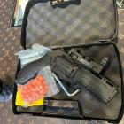 Une barrière infrarouge nous a permis de mesurer la vitesse des billes à pleine charge et donc de calculer la puissance du revolver. Nous avons mesuré une moyenne de 95 m/s sur 6 tirs.