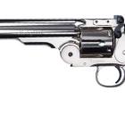 Le mécanisme inventé par Schofield permet d’ouvrir l’arme à une seule main et de basculer le canon mais aussi le barillet. Un système inédit et innovant pour l’époque.