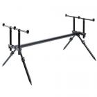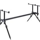 Ce support de cannes est conçu à partir d'un alliage en aluminium 6063. Celui-ci est utilisé dans l'aérospatial. Sa particularité est d'être léger et résistant. Sa grande stabilité est donnée par l'utilisation d'un double tube central ainsi que la possibilité de régler l'inclinaison des 4 pieds télescopiques. Ce rod pod comporte une finition noire anodisée conçue pour durer dans le temps. La partie centrale est réglable en longueur ce qui permet de pêcher avec différents types de cannes. Des cannes de 10 à 13 pieds ont été utilisées pour ce test. Les réglages sont nombreux ce qui permet de configurer ce rod pod presqu'à l'infini ! Du scion sous l'eau aux cannes verticales, tout est possible. Le montage est très rapide, moins de 4 minutes ! Tout comme son démontage.