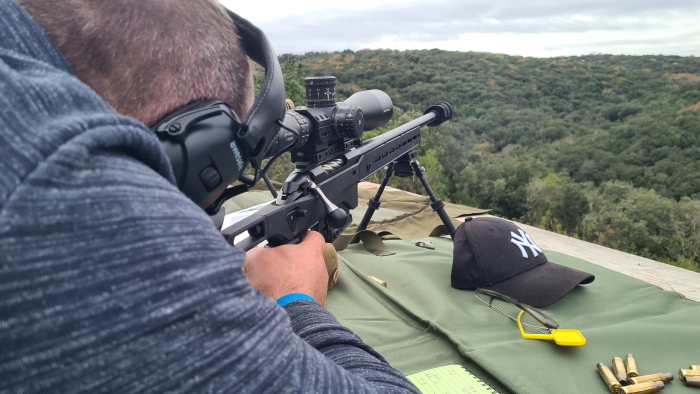 Les conditions étaient froides mais favorables, et la journée s’est révélée particulièrement productive. Sur le plan mécanique, les carabines ont fonctionné sans la moindre anomalie. La fluidité du verrou et la régularité du départ ont permis des enchaînements propres, avec des impacts obtenus systématiquement en un à deux coups, y compris aux distances les plus longues. Les cibles situées à 800 et 900 mètres, positionnées à une altitude supérieure à celle du tireur, imposaient une configuration de tir particulière, avec un canon sensiblement plus haut que la crosse. Cette contrainte rend la position moins naturelle et plus exigeante sur le plan postural. Malgré cela, la crosse réglable a parfaitement joué son rôle : le réglage en hauteur de la plaque de couche permet de conserver un appui stable dans le creux de l’épaule, assurant une bonne gestion du recul tout en limitant la fatigue.