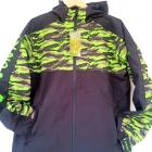 Cette veste possède une coupe droite assez longue qui protège le bas du dos et évite l’effet ruissellement sur les fesses. Un cordon de serrage réglable et blocable est situé en bas de la veste afin de la serrer contre le corps pour éviter les entrées d’air froid. Cette coupe très confortable permet une grande liberté de mouvements pour effectuer des lancers par exemple. La partie col remonte assez haut et une fois la veste fermée par son zip, le col recouvre la bouche jusqu’à l’arrête du nez. Le zip principal, étanche, ne s’ouvre que dans un seul sens, il est rendu encore plus efficace par un rabat intérieur qui bloquera le vent et l’eau même en cas d’embruns importants. Les manches se terminent par un manchon en néoprène en interne, elles sont équipée d’un élastique pour rester bien plaquée sur le poignet et se serrent via une patte velcro® empêchant de ce fait toute entrée d’eau intempestive. Au niveau du décor on retrouve un coloris noir mat bordé de parties camos dans des teintes vert fluo, noir et marron. On retrouve le marquage ainsi que le logo en gros et en vertical sur la manche droite, en petit sur le haut de la manche gauche et en très gros et horizontal dans le bas du dos. A noter aussi des patchs caoutchoutés et logotés qu’on retrouve sur les pattes de serrage des manches pour les rigidifier et faciliter la préhension avec les mains mouillées.