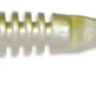 Dans le but de se conformer à la législation à venir sur l’interdiction du plomb dans les accessoires de pêche, Delalande a mis au point des têtes plombées en Zamac qui est un alliage de zinc, aluminium, magnésium et cuivre sans danger pour l’environnement. Moins lourd que le plomb, il est plus dur et sonne plus aigu lors des chocs avec le fond. Sur cette tête plombée sont enchâssés des yeux en 3D pour plus de réalisme, ils sont aussi protégés des chocs. La partie arrière collée au leurre s’adapte parfaitement au profil de ce dernier, la forme fuselée facilite les mouvements de darts et ne génère pas de rolling naturel.