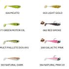 12 coloris composent la gamme des Zand Fat montés, on y retrouve des coloris ultra classiques comme le blanc ou le fire tiger ainsi que d’autres plus travaillés avec une peinture figurant des écailles ou une adjonction de paillettes dans la matière. On retrouve aussi la matière nacrée bleue sur certains coloris qui conduit si bien la lumière et quelques touches UV sur des coloris qui seront très utiles pour des pêches par faible luminosité.