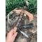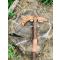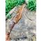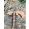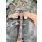 montage : mâchoire creusée, un T en métal collé à l'époxy 270 kg/cm a l'intérieur et collé dans le manche , gainé d'un morceau de cuir et recouvert de lanières de cuir brut