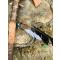 le manche est recouvert de lanières de cuir de cerf brut et un arrêtoir de main en cordelette de fibres naturelles