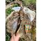 réalisé avec une mâchoire de cerf , gainé de lanières de cuir brut de cerf