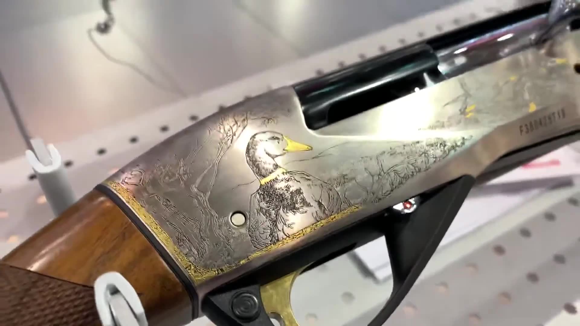 Le fusil semi automatique Raffaello de Benelli se pare d'une livrée superbe. C'est un cabinet d'artistes à Urbino en italie qui a créée les gravures qui ornent ce nouveau fusil nommé Academia. Le thène tourne autour des canards et gibiers d'eau, les gravures sont fines et bien mises en valeur sur le boitier de culasse brillant de ce fusil.