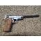 ce pistolet a la particularité d'être équipé d'origine d'une poigné bois qui était une ootion. cette poigné est de bien meilleur qualitée que celle en plastique qui était montée de série et qui était fragile