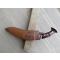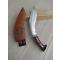 très beau couteau de type "Kukri", origine népalaise véritable, bien équilibré, maniable, esthétique, muni d'une bonne pointe et d'un tranchant efficace. Pour collectioneur ou pour tâches de jardin voire forestières , car cela peut servir d'outil. Le kukri a la force d'une hachette et d'une petite machette, il est multi-tâches. La lame a une longueur de 30 cm environ, et le dos de la lame a une épaisseur de 6 mm : on peut donc pousser dessus avec la main qui ne tient pas le manche, afin de trancher confortablement ou fendre des bâtons ou des bambous par exemple.