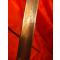 Poignée en bois filigrané d'un ruban et de fils d'argent. Viroles tressées en fils d'argent. Clavier bivalve pareillement décoré à la monture. Lame triangulaire de 83 cm de long signée au talon .