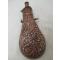 tres belle poire a poudre 19 em compléte - scene de fleurs et feuillage sur les deux faces