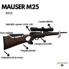 La Mauser 25 Max est la carabine au profil le plus évolué. Proposé avec une crosse à trou de pouce en bois de hêtre lamellé-collé, elle se caractérise par une stabilité maximale combinée à une position ergonomique des mains et un busc réglable.