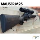 La Mauser 25 Pure arbore des lignes classiques avec une crosse en bois de noyer droite et une poignée pistolet.