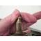 poire a poudre VIDE fin 19 em cuivre en corne blonde système de bec verseur a piston superbe état