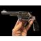 revolver proche neuf garde 95/100 de son nickelage d origine qq légères traces d oxydations sur le nickel. mécanique et canon neuf miroir. marquages et plaquettes parfaits !!!! canon de 4 pouces .. dans sa boîte d origine carton. chien et détente jaspée. introuvable sur le marché français. et rarissime aux us.