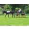 Voiture hippomobile pour ânes ou chevaux de la marque ATEL. Mini DOMINO Marathon, livrée avec quatre freins à disques, Timon et brancards coulissants inox, largeur de voie 120 cm, poid environ 150 kg. couleurs: vert, roues jaunes, filets. Achetée fin 2010 et toujours remisée sous abri. Elle a très peu servie. Valeur neuve en 2010: 5000€. Vendue 50% de son prix, soit 2500€. Des photos vont être ajoutées cette semaine.